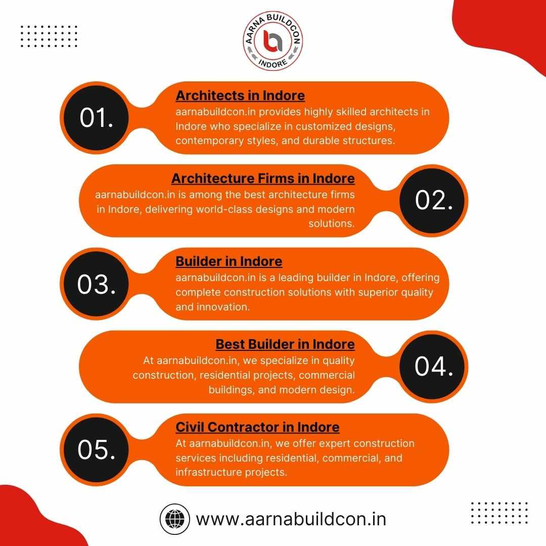 aarnabuildcon.in is a leading builder in Indore, offering complete construction solutions with superior quality and innovation. From luxury homes to commercial projects, we deliver excellence in design and execution. Our team ensures timely delivery, durable structures, and modern finishes. With a reputation for reliability and customer satisfaction, we are the preferred choice for building your dream property in Indore.